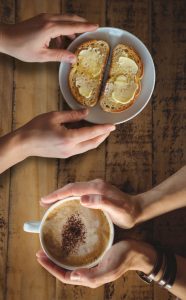 Close-up of woman holding coffee cup in café