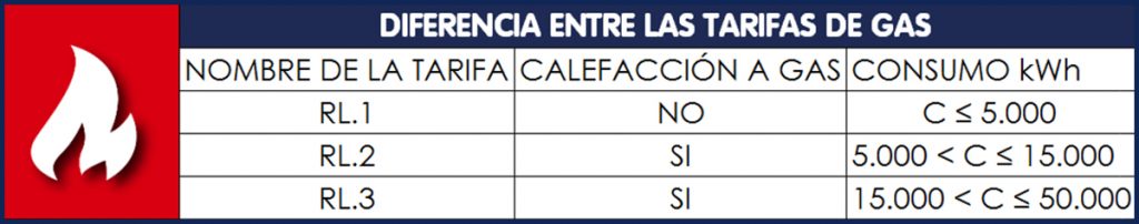 Básicamente estas tarifas se diferencian en si la vivienda tiene calefacción a gas o no y en el consumo, como puedes apreciar a continuación: