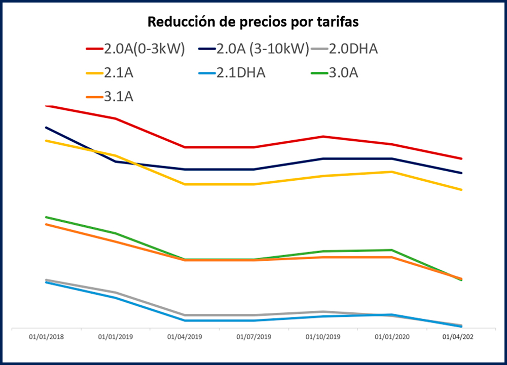 • Abril 2020: Reducción de los precios en todas las tarifas, llegando al 14% en las tarifas 3.0A y 3.1A.