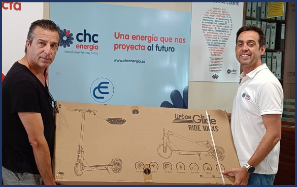 Andrés Marín Pérez, cliente de la delegación Romero Abreu Hermanos S.L., ha recogido el patinete eléctrico en la oficina y ya está adherido a Facturación Electrónica.