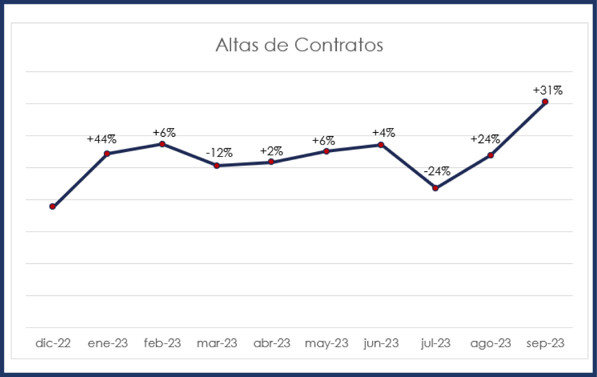 Como puedes apreciar, desde el lanzamiento del Plan de Impulso Comercial (1 de agosto), hemos incrementado la tasa de altas en más de un 60%. Sin embargo y a pesar de esta mejoría en el número de altas queremos ser prudentes, todavía queda mucho camino para recuperar la senda de las 3.000 altas mensuales y de esta forma cambiar tendencia de la cartera.