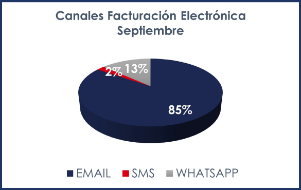 Uno de los motivos para este crecimiento ha sido los nuevos canales de envío de facturas SMS y sobre todo WhatsApp. Por ejemplo, durante el mes de septiembre, el 13% de los registros en factura digital se produjo por WhatsApp.