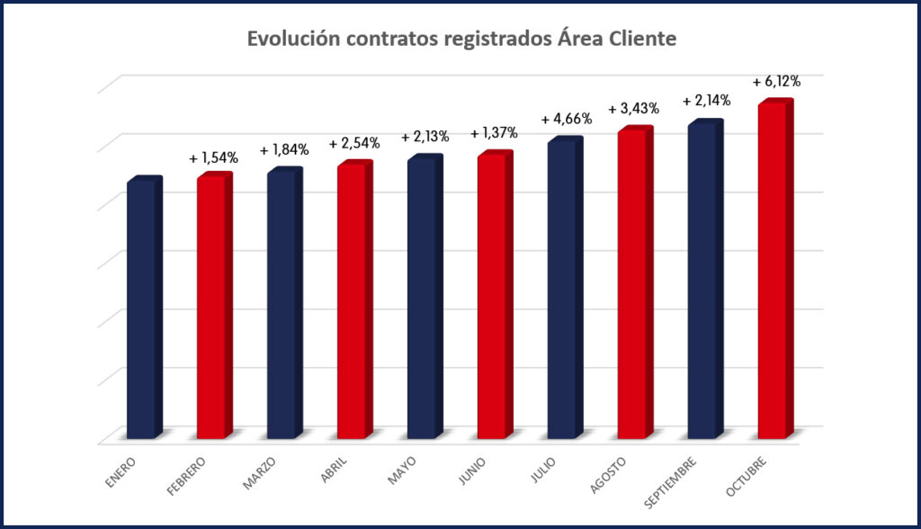 A continuación os mostramos la evolución de los contratos registrados en Área Cliente desde principios de año.