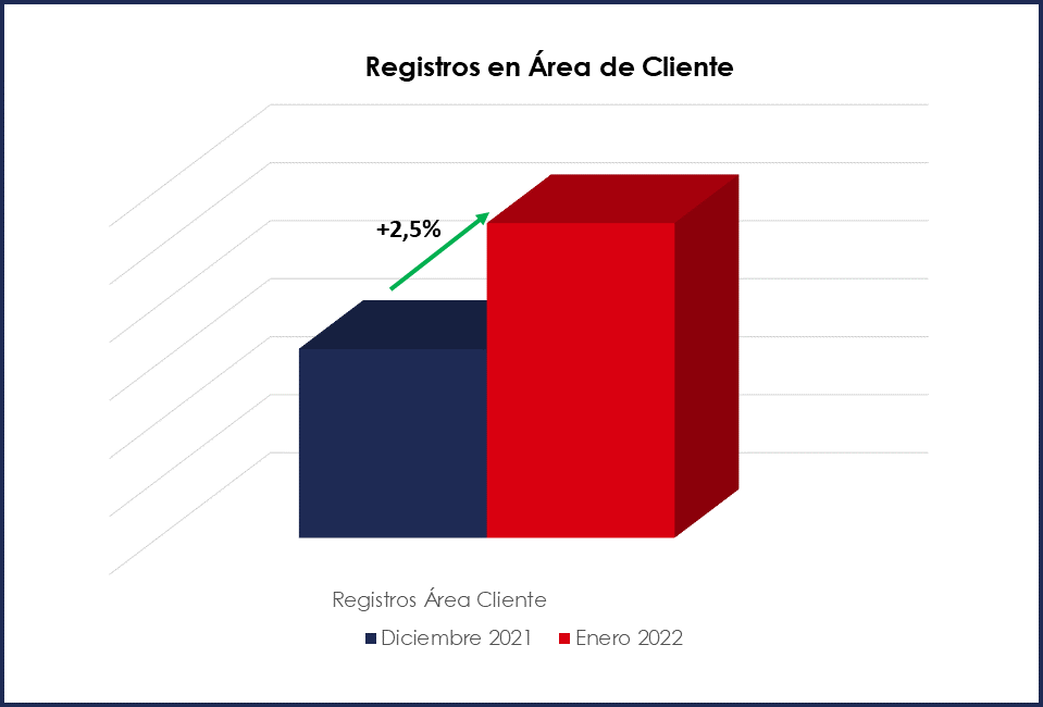 El año 2022 ha empezado con un interesante registro de clientes en ambas plataformas, en concreto se ha incrementado un 2,5% los clientes en Área Cliente y un 3,6% en Facturación Electrónica.