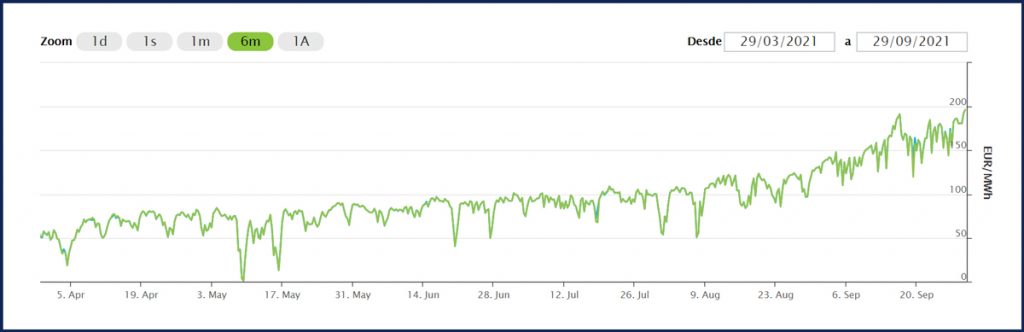 Para comenzar esta nueva línea de contenidos, el pasado 23 de septiembre, tratamos en el Blog de CHC Energía el contexto histórico de la evolución alcista del precio mayorista de electricidad.