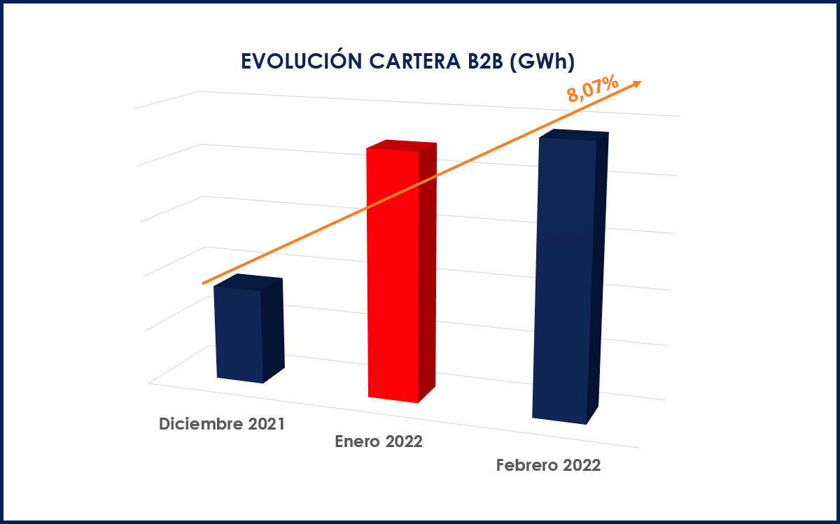 Por otro lado, en clientes B2B continuamos creciendo y renovando la cartera utilizando el producto indexado, lo cual permite a los clientes de CHC Energía no tener precios altos, sobre todo en estos momentos de volatilidad del mercado, y poderse cambiar a precio fijo en cuanto la situación lo permita.