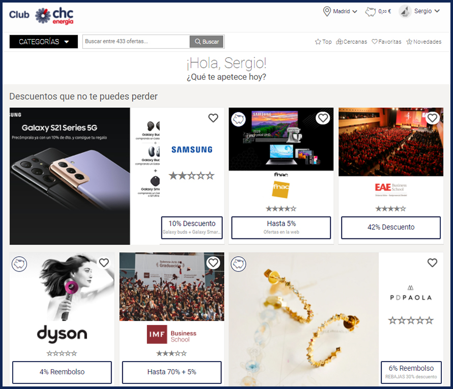 ¡Tenemos buenas noticias! El programa ya está listo y como te contamos a finales del mes de enero, hemos lanzado el Club CHC, nuestro programa de promociones y descuentos exclusivos, donde nuestros clientes encontrarán cientos de ofertas de compañías de referencia de diferentes sectores de actividad (restauración, viajes, ocio, etc.) para que puedan empezar a ahorrar en sus compras del día a día.