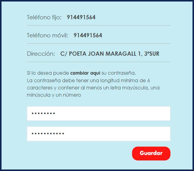 4. Para restablecer la contraseña, tan sólo tendrás que pinchar sobre tu nombre, introducir la predeterminada y la nueva con la que queráis acceder a partir de entonces.