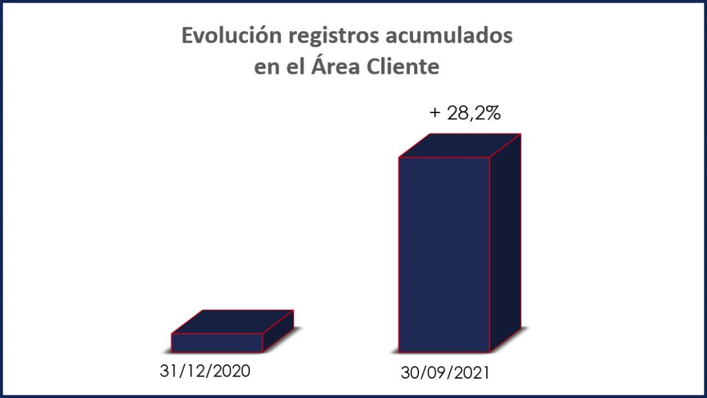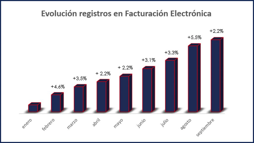 Si ahora comparamos el crecimiento acumulado desde principios de año, podríamos indicar que el incremento de registros en el Área de Clientes ha sido de un 28,2% y en Facturación Electrónica de un 34,2%.