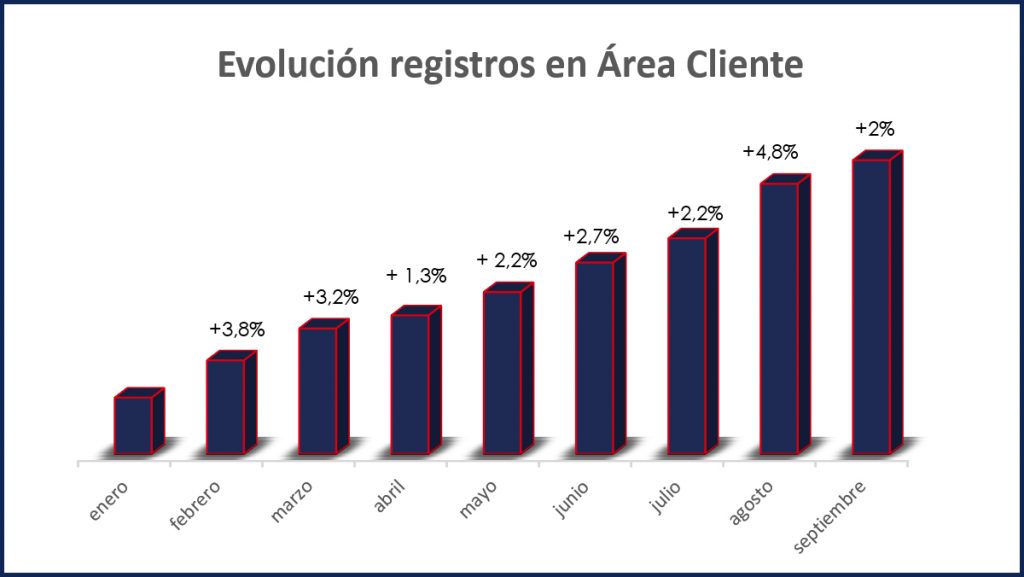 De nuevo podemos confirmar la tendencia positiva de registros en el Área de Cliente y Facturación Electrónica de CHC Energía. Así nos lo indican los últimos datos, correspondientes al mes de septiembre y los cuales compartimos con vosotros a continuación: