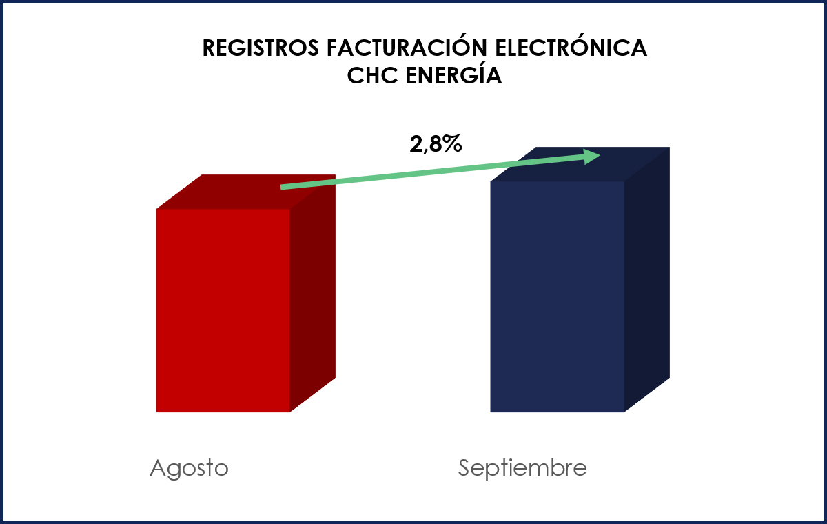 Además, en COR Energético, las personas que se han adherido a Facturación Electrónica han aumentado en torno a un 4,6%, tal y como te mostramos en el siguiente gráfico: